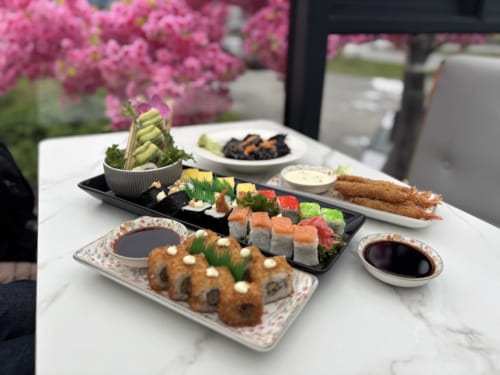 We ordered the Japanese Super Family Box for 399 DKK. The sushi served in the warm restaurant was generously topped with mayonnaise. The staff, who had come to this cold northern land from the Philippines, a hot country, were very friendly.
