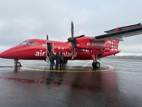 To reach Greenland, the Domain Expedition had to board a flight with Air Greenland. It was a direct flight from Copenhagen to Nuuk. This route is known for frequent delays due to bad weather, but fortunately, our flight departed on time.