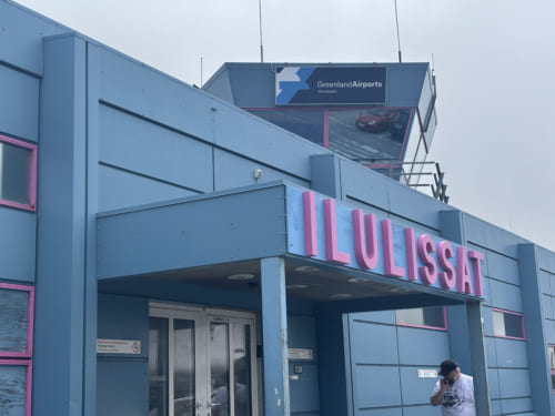After about an hour and a half, we arrived at Ilulissat Airport, as announced by colorful pink letters.