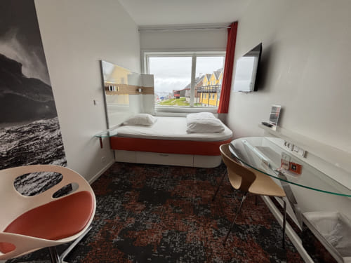 We arrived at our accommodations, the HHE Express hotel. It was a clean, business style hotel. The view of Nuuk’s colorful, charming streets from the window was lovely.