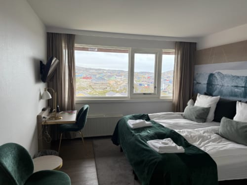At Hotel Arcti, depending on your room, you can either look down over the town of Ilulissat,