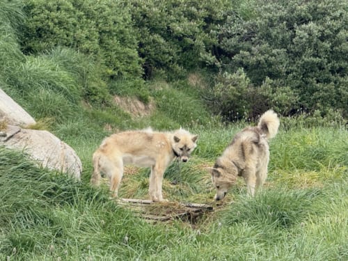 Here too, we found sled dogs. In winter, dog sledding remains a vital means of transportation.