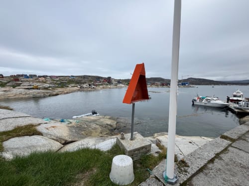 Do you know what this red triangle I saw in the port is? It’s a navigational marker (a daymark) for ships. It’s a visual marker to indicate a reef, or the port entrance or some other navigational information. While not as elaborate as a Japanese lighthouse, it’s still an extremely important safety aid in Greenland, where there is a lot of ice and rocks.