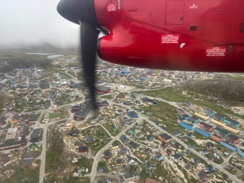 From the capital Nuuk, we headed to our next destination, Ilulissat, a town of about 4,500 people facing Disko Bay on Greenland’s west coast. Icebergs floating by are a regular occurrence for the residents here. We traveled in a small, 27-seat propeller plane.