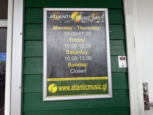 Atlantic Music ApS, Greenland’s only record store, which was also visited by the Domain Expedition. Incidentally, “ApS” (Anpartsselskab) refers to a limited liability company, closer to a Japanese ‘LLC’ than a “Kabushiki Kaisha” (corporation).