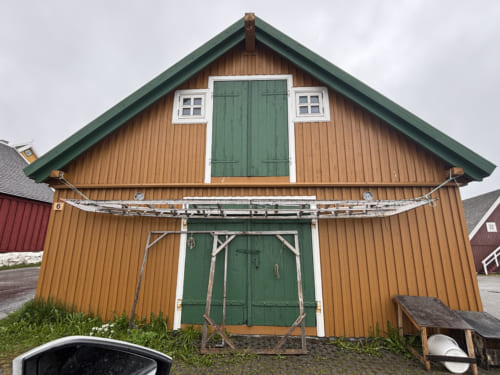 Next is the doctor’s house. Apparently, the local hospital is this yellow house. In the past, buildings in Greenland were color-coded according to their use, with red for schools, black for police stations, and yellow for hospitals, but now people can freely paint whatever color they like.