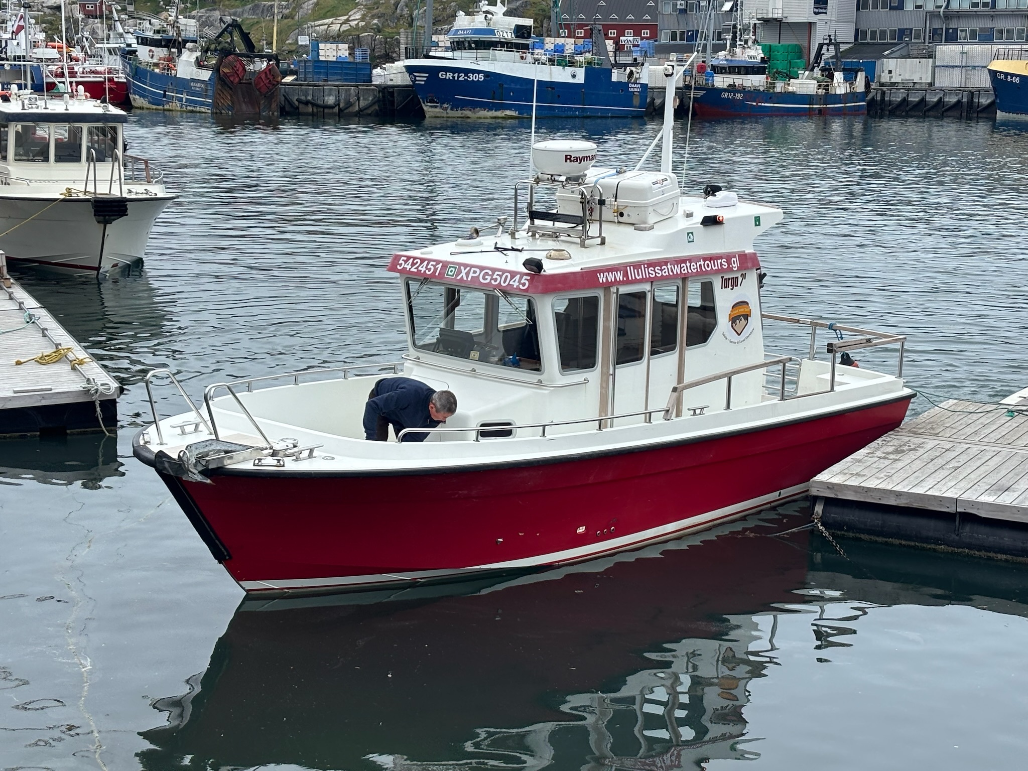 Our next destination is Oqaatsut. This small settlement of about 40 people lies roughly 15km north of Ilulissat. We are going there in a small boat.