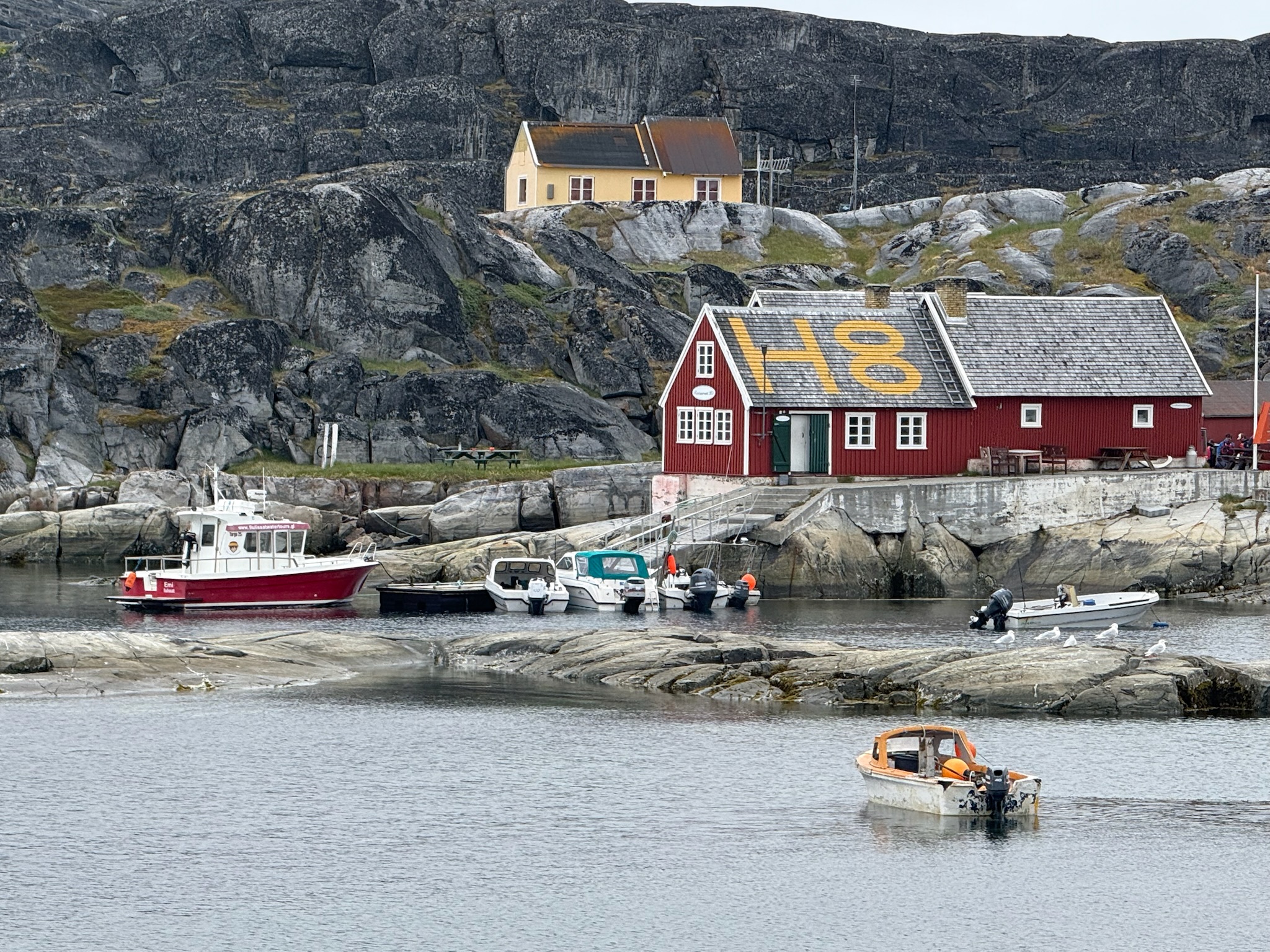 After a 30-minute boat ride past numerous magnificent icebergs, we finally arrive at Oqaatsut. Our first stop is the local restaurant “H8“. The restaurant’s name comes from H8, where helicopters dropped off food and supplies in the early 20th century .