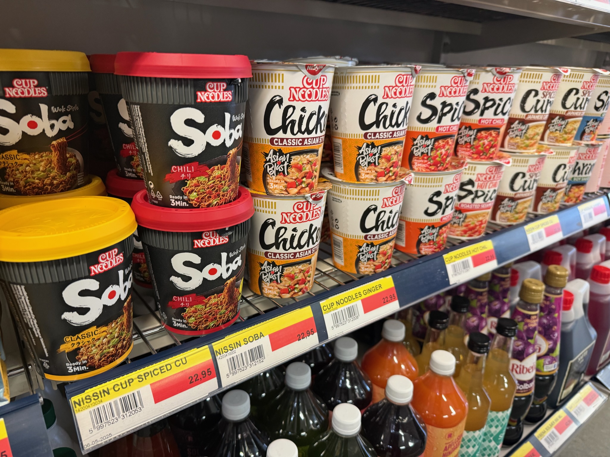 They had Nissin Cup Noodles. They even had soba cup noodles, which I haven’t seen in Japan! The price was 22.95 DKK.
