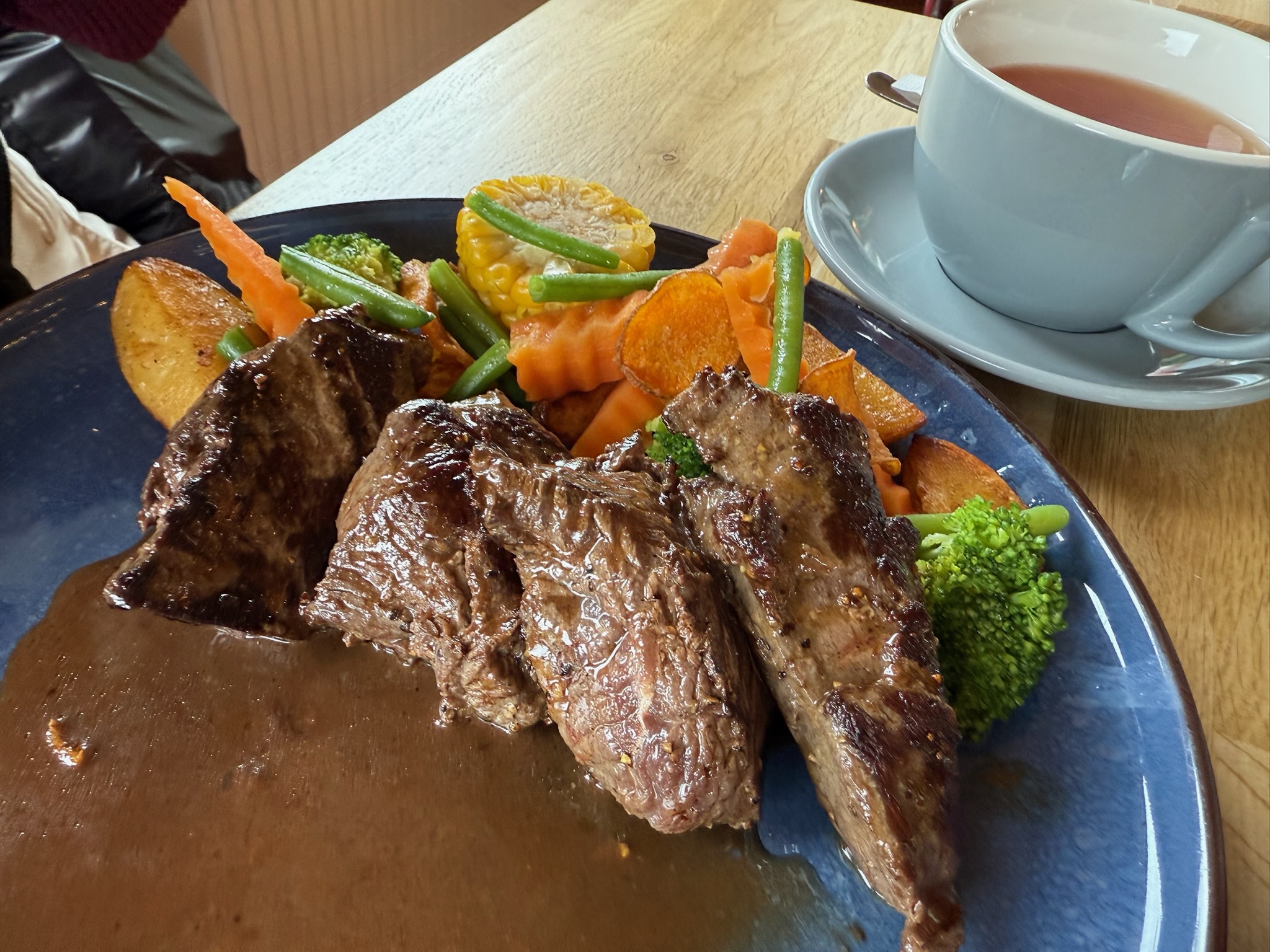 On the menu was something we don’t see every day, musk steak for 285 DDK . Musk are the source of “musk” an ingredient famously used in perfumes. I took a bite, expecting a strong flavor. It was wild but tender, and I was impressed by the subtle flavor that lingered in the aftertaste.