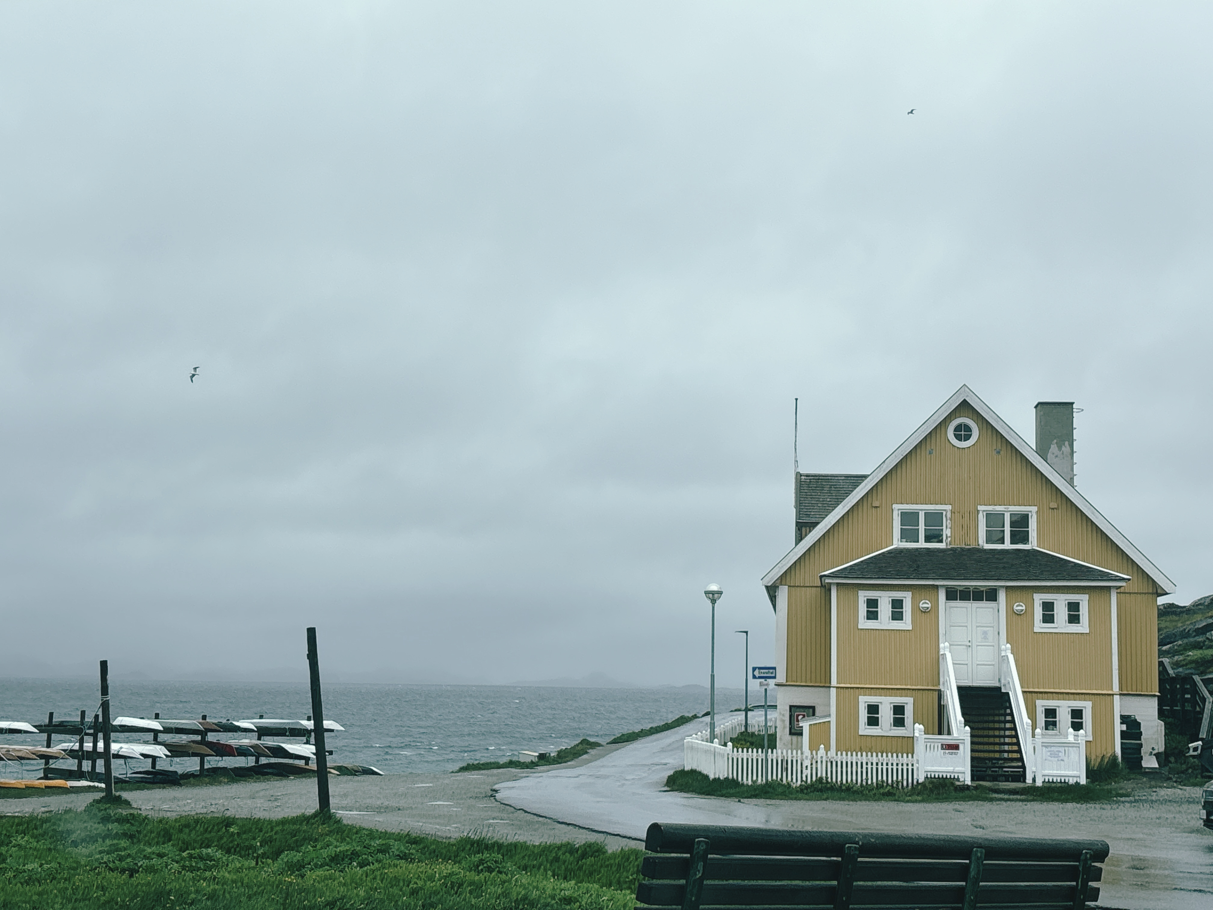 Next is the doctor’s house. Apparently, the local hospital is this yellow house. In the past, buildings in Greenland were color-coded according to their use, with red for schools, black for police stations, and yellow for hospitals, but now people can freely paint whatever color they like.